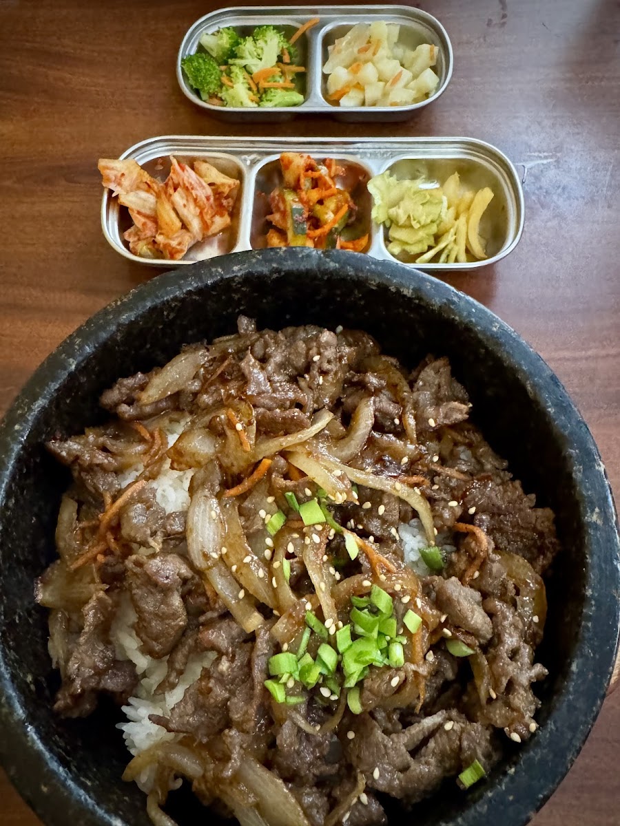 Great little downtown spot. Good size menu. Our food was presented in the super hot stone bowls, which is fun and unique. I ordered M14, spicy beef soup, not sure what it's supposed to taste like, but it was pretty good. Great spice level, but the broth was a bit lacking in flavor for my taste. I look forward to trying other items on the menu. Service was great. Place was clean.