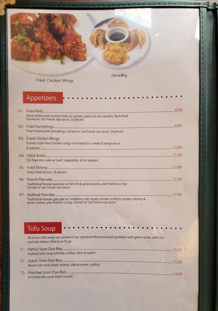 The menu at Hotstone Authentic Korean Cuisine offers a well-rounded selection of comforting, flavorful dishes that invite you to enjoy a genuine Korean dining experience. The focus is on hearty, satisfying meals served in warm, inviting portions, perfect for everything from a casual lunch to a relaxed dinner with family or friends.